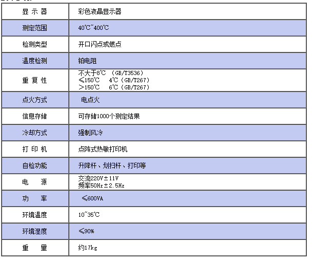 KLK301開口閃點(diǎn)自動測定儀是采用ARM微處理器技術(shù)設(shè)計的一款新型閃點(diǎn)自動測定儀。該儀器采用大屏幕彩色液晶顯示,中文菜單觸摸屏控制,完全電點(diǎn)火方式。具有自動升溫,自動劃掃,自動點(diǎn)火,標(biāo)準(zhǔn)程序適時選擇,溫度自動跟蹤顯示,自動鎖定閃點(diǎn)值并自動打印結(jié)果,大氣壓校正和強(qiáng)制風(fēng)冷功能。 該儀器結(jié)構(gòu)合理、操作簡單,測定結(jié)果穩(wěn)定可靠是開口閃點(diǎn)測定的理想儀器,儀器廣泛運(yùn)用于電力、石油、化工、科研等部門。 符合標(biāo)準(zhǔn)GB/T3536-2008、GB/T267-88。 技術(shù)參數(shù):