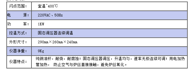 儀器符合GB/T3536;GB/T267;ASTMD92標(biāo)準(zhǔn),適用于測(cè)定石油產(chǎn)品的閃點(diǎn)和燃點(diǎn),但不適用于測(cè)定燃料油的開(kāi)口閃點(diǎn)低于79℃石油產(chǎn)品。儀器采用固態(tài)調(diào)壓器,用調(diào)節(jié)旋鈕調(diào)節(jié)電爐電壓從而實(shí)現(xiàn)按標(biāo)準(zhǔn)要求的升溫速度。